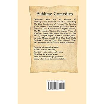 Sublime Comedies -- Collected here are all sixteen of Shakespeare's brilliant comedies. Including The Two Gentlemen of Verona, The Taming of the Shrew, The Comedy of Errors, Love's Labour's Lost, A Midsummer Night's Dream, The Merchant of Venice, The Merry Wives of Windsor, Much Ado About Nothing, As You like it, Twelfth Night; Or, What You Will, Measure for Measure, All's Well That Ends Well, Pericles, Prince of Tyre, The Winter's Tale, The Tempest, and The Two Noble Kinsmen.